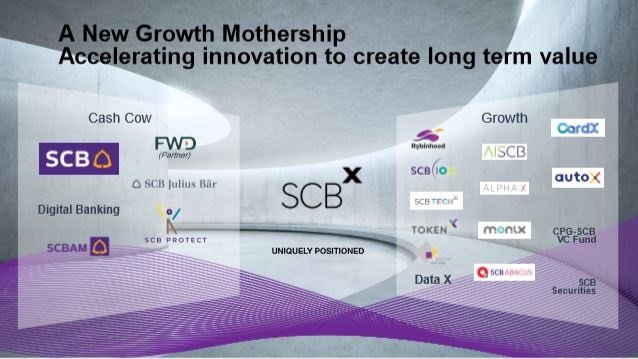 หลังการประกาศปรับโครงสร้างองค์กรครั้งใหญ่ เมื่อวันที่ 22 กันยายน ปีที่แล้ว และได้รับมติอนุมัติจากที่ประชุมวิสามัญผู้ถือหุ้น เมื่อปลายปี ภายใต้ยุทธศาสตร์ยานแม่ "กลุ่มเอสซีบี เอกซ์" (SCBX) มีความเคลื่อนไหวที่สะท้อนแนวทางการสร้างธุรกิจเทคโนโลยีการเงินและแพลตฟอร์มออกมาให้เห็นอย่างต่อเนื่อง ทั้งการเปิดตัวบริษัทลูกใหม่ๆ เช่น AISCB, SCB TechX, Alpha X รวมถึงการขับเคลื่อนผ่านรูปแบบการลงทุน อาทิ การจัดตั้งกองทุนร่วมทุน หรือ Venture Capital ที่มุ่งเน้นการลงทุนใน Disruptive Technology ด้านบล็อกเชน สินทรัพย์ดิจิทัล เทคโนโลยีด้านการเงิน และเทคโนโลยีอื่นๆ ที่มีศักยภาพในการเติบโตสูงทั่วโลก