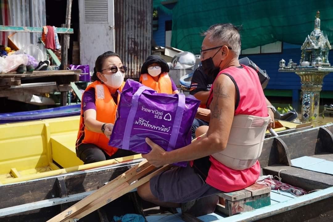 จากเหตุการณ์อุทกภัยที่เกิดขึ้นในหลายพื้นที่ ก่อให้เกิดปัญหาวิกฤตน้ำท่วมสูงและน้ำขังในหลายพื้นที่ สร้างความเสียหายต่อชีวิต ทรัพย์สิน บ้านเรือน พื้นที่เกษตรกรรม รวมถึงกระทบต่อความเป็นอยู่ของพี่น้องประชาชน คณะผู้บริหารและพนักงาน บมจ. ธนาคารไทยพาณิชย์ (SCB) ภายใต้การนำของนายกฤษณ์ จันทโนทก ประธานเจ้าหน้าที่บริหาร ได้ร่วมกันจัดเตรียมและส่งมอบถุงยังชีพ "น้ำใจไทยพาณิชย์" ภายในบรรจุสิ่งของจำเป็นในชีวิตประจำวัน ได้แก่ ข้าวสาร ข้าวสวยพร้อมรับประทาน อาหารสำเร็จรูป น้ำพริก กระดาษชำระ เพื่อนำไปช่วยเหลือเร่งด่วนให้กับพี่น้องประชาชนในพื้นที่ต่างๆ ทั่วทุกภูมิภาคของประเทศ ที่ได้รับความเดือดร้อนด้วยความห่วงใย ภายใต้โครงการ "ช่วยผู้ประสบภัยกับไทยพาณิชย์"