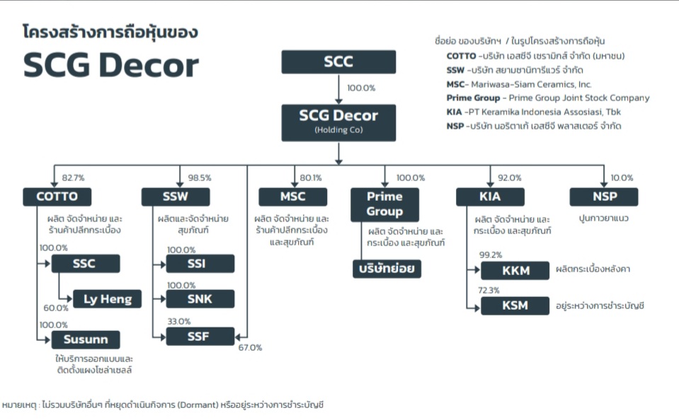 ทั้งนี้ หากไม่นับ COTTO SCG Décor ยังมีกลุ่มบริษัทย่อยอีก 4 แห่ง ประกอบไปด้วย