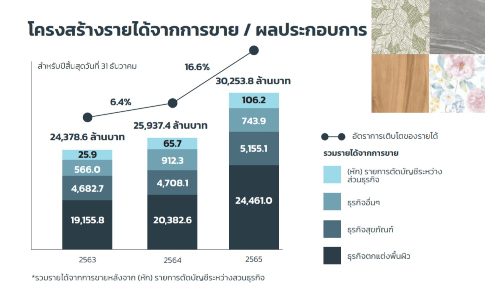 สำหรับผลดำเนินงานย้อนหลัง 3 ปี (ปี 2563– 2565) มีการเติบโตของยอดขายเติบโตอย่างต่อเนื่อง จาก 2.43 หมื่นล้านบาท เพิ่มเป็น 2.59 หมื่นล้านบาท และ 3.02 หมื่นล้านบาท โดยในปีที่ผ่านมา มีรายได้จากการส่งออกกว่า 4,500 ล้านบาท คิดเป็น 15% ของรายได้รวม จากการส่งออกสินค้าไปในตลาดอาเซียน และประเทศอื่น ๆ รวมกว่า 53 ประเทศ