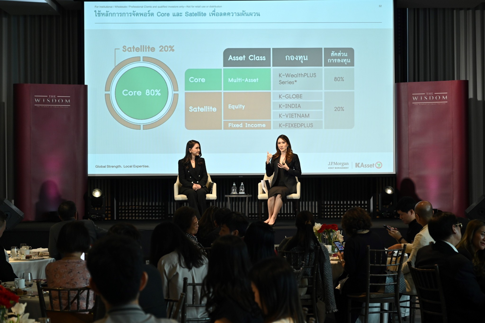 สำหรับตลาดหุ้นอื่นๆ แนะนำการจัดพอร์ตแบบผสมผสาน Core & Satellite เพื่อกระจายความเสี่ยง อย่างการลงทุนผ่านกองทุน K-WealthPLUS Series ที่กระจายการลงทุนในสินทรัพย์หลายประเภททั่วโลก ซึ่งเป็นโซลูชันด้านการลงทุนที่บริษัทฯ พัฒนาร่วมกับ J.P. Morgan Asset Management พันธมิตรระดับโลก โดยแนะนำให้ถือเป็นพอร์ตหลัก (Core portfolio) ในสัดส่วน 80% พอร์ตรวม และเลือกจัดสรรเงินลงทุนให้เหมาะกับระดับความเสี่ยง