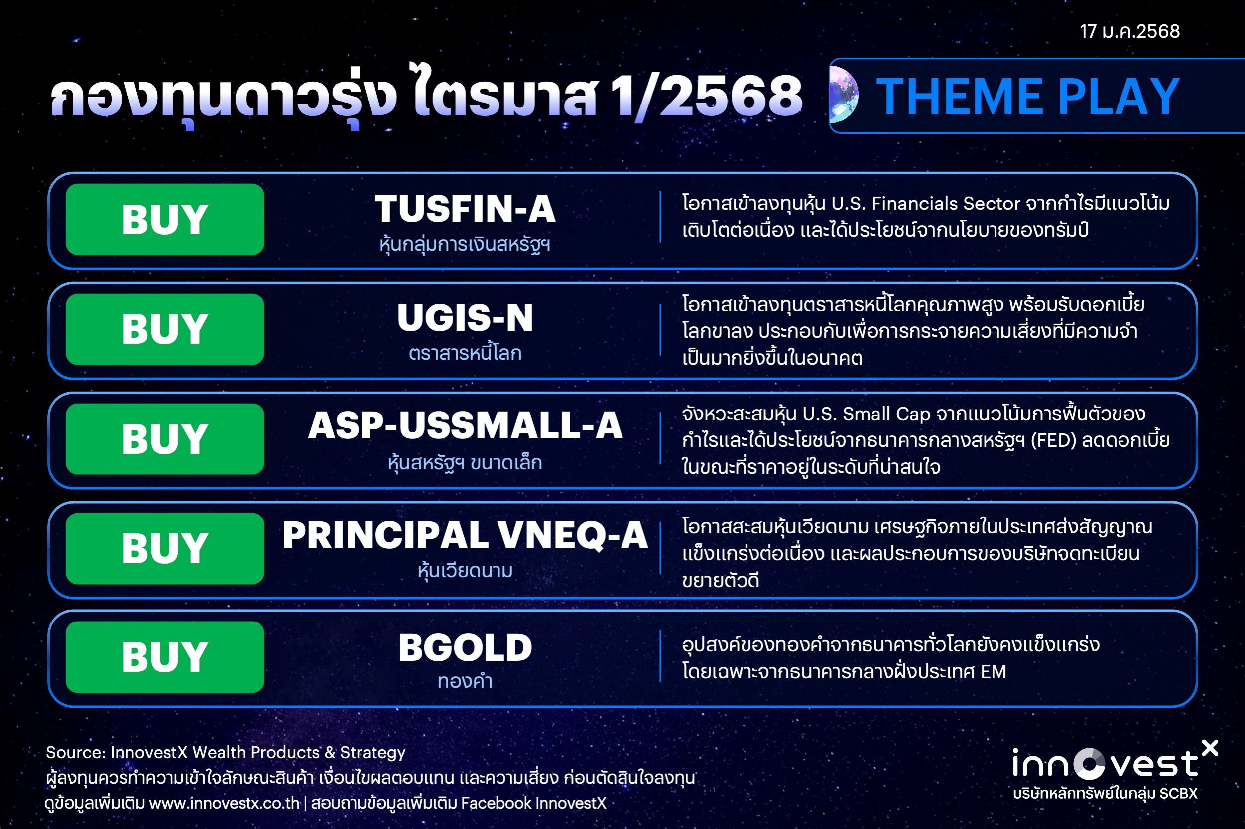 อย่างไรก็ตาม การที่ตลาดการเงินได้ปัจจัยหนุน ทั้งการลดดอกเบี้ยของธนาคารกลางหลายแห่ง และการออกมาตรการกระตุ้นเศรษฐกิจในหลายประเทศ โดยเฉพาะจีน จึงทำให้การจัดสรรเงินลงทุนปีนี้ ควรเพิ่มน้ำหนักลงทุนตราสารทุนมากกว่าตราสารหนี้ และใช้ทองคำเป็นสินทรัพย์ในการกระจายความเสี่ยง แต่กลยุทธ์การลงทุนจำเป็นต้องเน้นเลือกลงทุน (Selective) เนื่องจากเป็นปีแห่งการเข้าสู่ภาวะปกติ (Normalization) ทำให้ไม่อาจคาดหวังการเติบโตของกำไรตลาดมากเหมือนที่เกิดในปี 2567 ได้อีก ประกอบกับการกลับมาของนายโดนัลด์ ทรัมป์ ถูกสะท้อนเข้าไปในราคาสินทรัพย์หลายประเภท นับตั้งแต่รู้ผลการเลือกตั้ง โดยมีความเป็นไปได้สูงว่า ความกังวลด้านนโยบาย TRUMP 2.0 จะไม่ย่ำแย่เหมือนสมัย TRUMP 1.0 จึงแนะนำเลือกลงทุน หุ้นกลุ่มเงินและหุ้นขนาดกลางและเล็กสไตล์ ที่เข้าข่ายหุ้นคุณค่า ของสหรัฐฯ ซึ่งหลายตัวมีจุดเด่นเรื่องระดับราคาซื้อขายที่ต่ำกว่าค่าเฉลี่ย อีกทั้งยังมีปัจจัยบวกจากนโยบายกระตุ้นเศรษฐกิจที่ใกล้จะมาถึงเข้ามาหนุนอีกแรงหนึ่ง