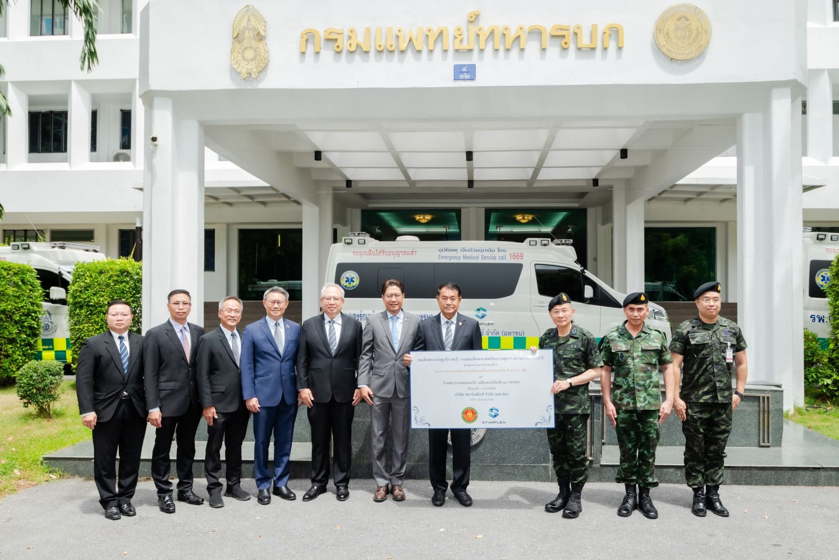เมื่อเร็วๆ นี้ บมจ. สตาร์เฟล็กซ์ (SFLEX) นำโดยพลเอก มนตรี สังขทรัพย์ ดร. สมโภชน์ วัลยะเสวี และ ดร. สมชาย วงศ์รัศมี เป็นผู้แทนบริษัทฯ ส่งมอบรถพยาบาลฉุกเฉิน จำนวน 3 คัน และเครื่องช่วยหายใจแบบติดตั้งบนเฮลิคอปเตอร์ มูลค่ารวมกว่า 10.15 ล้านบาท ให้กับโรงพยาบาลค่ายศรีพัชรินทร จ. ขอนแก่น โรงพยาบาลสรรพสิทธิประสงค์ จ. อุบลราชธานี และโรงพยาบาลค่ายกฤษณ์สีวะรา จ. สกลนคร โดยมีพลเอก พนา แคล้วปลอดทุกข์ ผู้บัญชาการทหารบก พร้อมด้วยพลเอก ชิษณุพงศ์ รอดศิริ ผู้ช่วยผู้บัญชาการทหารบก พลโท บุญสิน พาดกลาง แม่ทัพภาคที่ 2 ร่วมเป็นผู้รับมอบ เพื่อนำไปช่วยเหลือประชาชนให้สามารถเข้าถึงบริการทางการแพทย์ที่ได้มาตรฐานและปลอดภัย เสริมศักยภาพโรงพยาบาลชายแดน ในพื้นที่ภาคอีสานต่อไป