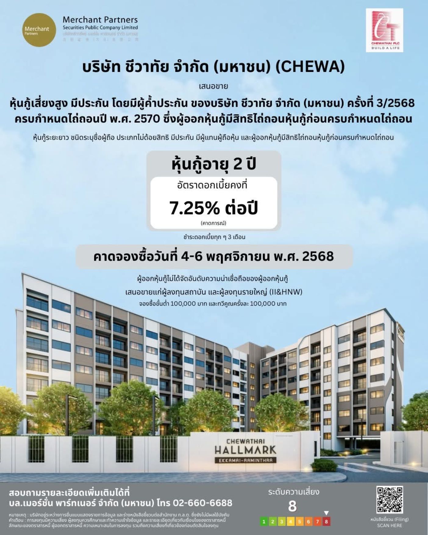 บมจ. ปริญสิริ (PRIN) พร้อมเสนอขายหุ้นกู้ครั้งที่ 3 ของปี 2568 เป็นหุ้นกู้ไม่ด้อยสิทธิ ไม่มีประกัน และมีผู้แทนถือหุ้นกู้ จำนวน 2 รุ่น คือ อายุ 2 ปี 1 เดือน อัตราดอกเบี้ยปีละ 5.90% และอายุ 3 ปี อัตราดอกเบี้ยปีละ 6.25% วงเงินรวมไม่เกิน 650 ล้านบาท จ่ายดอกเบี้ยทุก 3 เดือน ให้กับนักลงทุนสถาบัน และนักลงทุนทั่วไป ระหว่างวันที่ 30 – 31 ตุลาคม และ 3 พฤศจิกายนนี้ ผ่านผู้จัดการการจัดจำหน่ายหุ้นกู้ 8 ราย คือ บริษัทหลักทรัพย์ บลูเบลล์ (BLUEBELL) บริษัทหลักทรัพย์ เอเซีย พลัส (ASPS) บริษัทหลักทรัพย์ โกลเบล็ก (GBS) บริษัทหลักทรัพย์ ซีจีเอส อินเตอร์เนชั่นแนล ประเทศไทย (CGSI) บมจ. หลักทรัพย์ ดาโอ ประเทศไทย (DAOL) บมจ. หลักทรัพย์ เมอร์ชัน พาร์ทเนอร์ (MPS) บมจ. หลักทรัพย์ พาย (Pi) และ บมจ. หลักทรัพย์ ยูโอบี เคย์เฮียน (UOBKH)