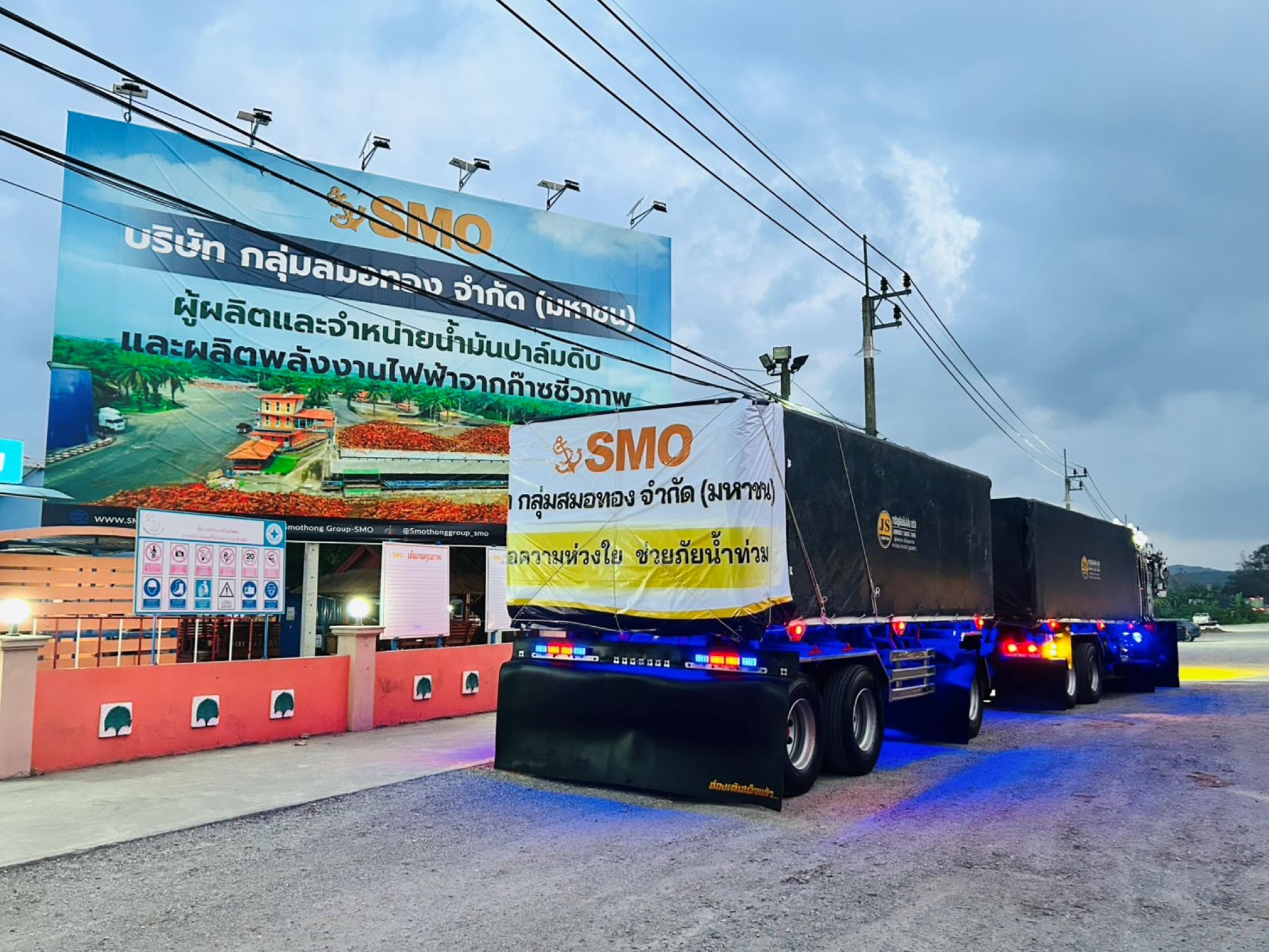 นายกิตติพงษ์ พวงมาลา ประธานเจ้าหน้าที่บริหาร บมจ. กลุ่มสมอทอง (SMO) เปิดเผยว่า แม้หลายพื้นที่ในภาคใต้จะได้รับผลกระทบจากสถานการณ์น้ำท่วมครั้งใหญ่ แต่โรงงานทั้ง 3 แห่ง ที่ อ. ท่าชนะ และ อ. พนม จ. สุราษฎร์ธานี กับโรงงาน เอ แอล ปาล์ม จ. ชุมพร ยังคงเปิดให้บริการตามปกติ ทำให้สามารถผลิตและรับซื้อผลปาล์มน้ำมันจากเกษตรกรในพื้นที่ได้อย่างต่อเนื่อง ไม่เกิดการหยุดชะงัก พร้อมกับให้ความร่วมมือกับหน่วยงานภาครัฐในหลายพื้นที่ เพื่อดูแลและสนับสนุนชุมชนเกษตรกร รวมถึงส่งมอบสิ่งของอุปโภคบริโภค ทั้งข้าวสาร อาหารแห้ง บะหมี่กึ่งสำเร็จรูป ปลากระป๋อง น้ำดื่ม นม กระดาษชำระ ผ้าอนามัย และและของใช้จำเป็นในชีวิตประจำวันสำหรับเด็กเล็กและผู้ประสบภัยทั่วไป เพื่อช่วยเหลือประชาชนใน อ. หาดใหญ่ จ. สงขลา และพื้นที่โดยรอบที่ได้รับผลกระทบครั้งนี้ ผ่านที่ว่าการอำเภอท่าชนะ โดยมีนายสำนวน ทองศรี นายอำเภอท่าชนะ เป็นตัวแทนรับมอบ เพื่อกระจายสิ่งของไปยังพื้นที่ที่ได้รับความเดือดร้อนตามลำดับความเร่งด่วน