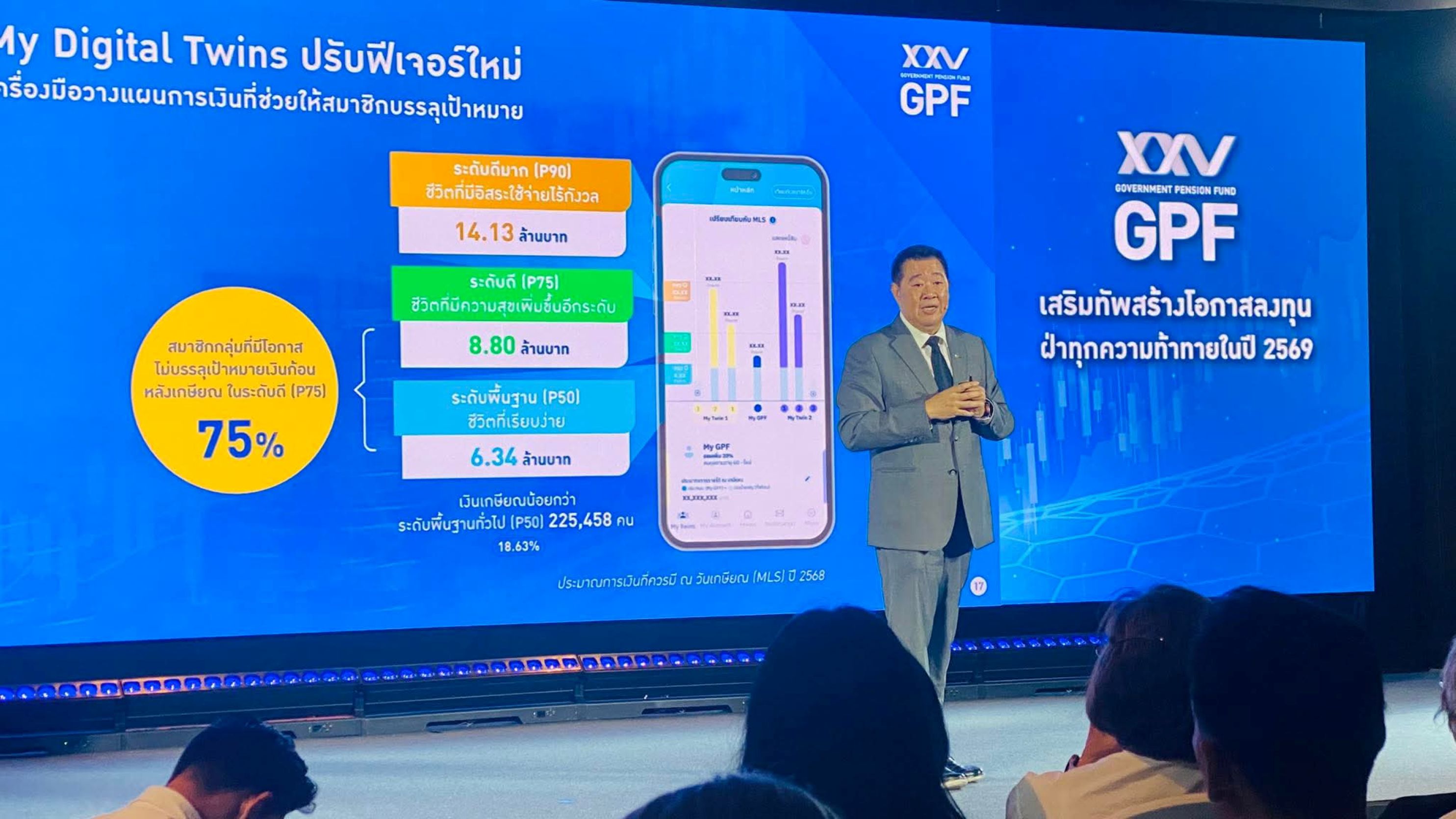 พร้อมกันนี้ กบข. กำลังพัฒนากลยุทธ์การลงทุนที่สามารถสร้างผลตอบแทนในระยะยาว โดยกำลังศึกษาความเป็นไปได้ในการลงทุนใหม่ๆ นำร่องด้วยโครงการที่อยู่อาศัยสำหรับผู้สูงอายุ (Senior Housing Sandbox) และศึกษาโอกาสลงทุนในเศรษฐกิจสูงวัย (Siver Economy) เพื่อสร้างผลตอบแทนในระยะยาว สูงกว่าอัตราเงินเฟ้อเฉลี่ย 10 ปี อย่างน้อย 2-3% ตลอดจนชวยกระตุ้นให้สมาชิกออมเงินเพิ่มอย่างต่อเนื่อง รวมถึงส่งเสริมให้สมาชิกเลือกแผนการลงทุนที่เหมาะสมกับช่วงอายุ เป้าหมายทางการเงิน และความมั่นคงทางการเงิน เพื่อให้สมาชิกสามารถดำรงชีวิตหลังเกษียณได้อย่างมีสุข