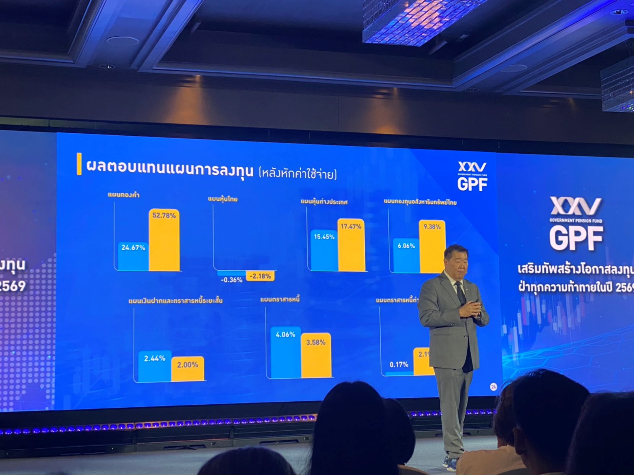 การปรับแนวทางการลงทุนดังกล่าว ทำให้ กบข. สามารถบริหารผลตอบแทนรายแผนในปี 2568 ให้ปรับตัวดีขึ้นจากปีก่อนหน้า ได้เป็นส่วนใหญ่ หลังจากการลงทุนทองคำ สามารถสร้างผลตอบแทนได้สูงที่สุด ถึง 52.8% รองลงไปเป็นการลงทุนหุ้นต่างประเทศ และการลงทุนกองทุนอสังหาริมทรัพย์ไทย ซึ่งให้ผลตอนแทนจากการลงทุนได้ 17.5% และ 9.4% ตามลำดับ ส่งผลให้แแผนเชิงรุก 65 ทำผลตอบแทนเฉลี่ยได้เกือบ 8.9% ขณะที่แผนสมดุลตามอายุ (สมาชิกอายุน้อยกว่า 55 ปี) และแผนลงทุนพื้นฐาน สร้างผลตอบแทนได้ 8.7% และ 4.3% ตามลำดับ สะท้อนให้ห็นถึงการกระจายการลงทุนที่เหมาะสม และการยกระดับคุณภาพชีวิตสมาชิกให้ดีขึ้นในระยะยาว