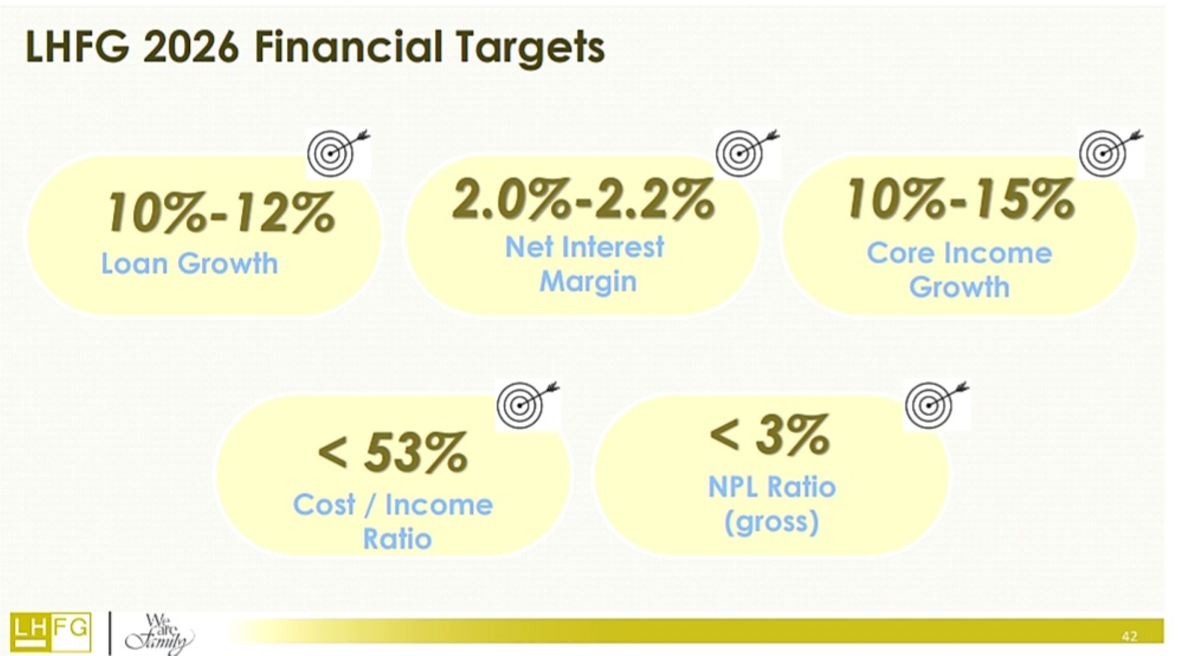 โดยธุรกิจธนาคาร ซึ่งเป็นช่องทางสร้างรายได้หลัก ตั้งเป้าการเติบโตของสินเชื่อที่ 10-12% (ลดลงเล็กน้อยจากปี 2568 ที่สินเชื่อเติบโต 12.4% ในทุกกลุ่มลูกค้า โดยสินเชื่อธุรกิจเติบโต 9% ส่วนสินเชื่อลูกค้ารายย่อยโตมากกว่า 20% หลักๆ จากสินเชื่อบ้านและสินเชื่อส่วนบุคคล) เน้นการดำเนินธุรกิจด้วยความระมัดระวังเพื่อการเติบโตอย่างยั่งยืน และรักษาระดับ NPL ให้ต่ำกว่า 3% ผ่านการรุกขยายพอร์ตลูกค้า SMEs ด้วยผลิตภัณฑ์สินเชื่อที่ออกแบบสำหรับอุตสาหกรรมเป้าหมาย การสร้างพอร์ตห่วงโซ่อุปทานระดับโลก (FDI) และการขยายพอร์ตสินเชื่อธุรกิจระหว่างประเทศ ที่ทำร่วมกับบริษัทแม่ ธนาคาร CTBC เพื่อเพิ่มรายได้ค่าธรรมเนียมจากบริการปริวรรตเงินตราต่างประเทศ รวมถึงการสนับสนุนสินเชื่อสีเขียว (Green Finance) และสินเชื่อที่เชื่อมโยงกับการดำเนินงานด้านความยั่งยืน (Sustainability-Linked Loan) เพื่อส่งเสริมการเปลี่ยนผ่านสู่เศรษฐกิจคาร์บอนต่ำ