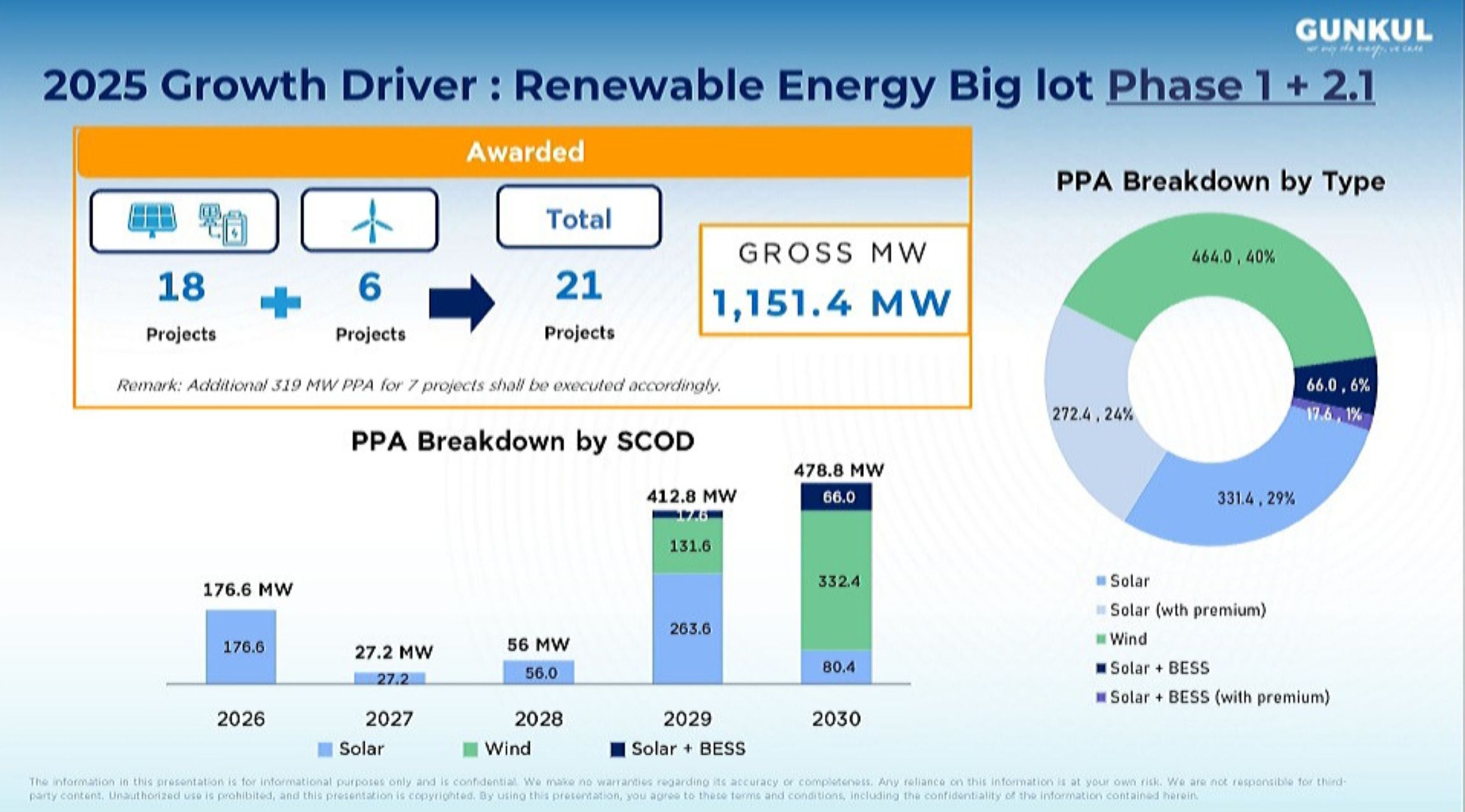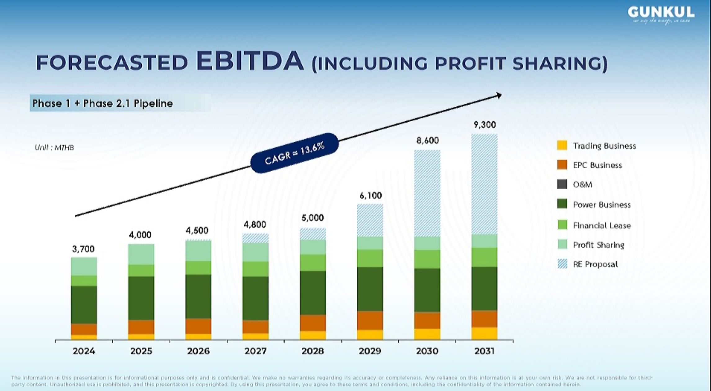 สำหรับสัดส่วนรายได้ปีนี้ จะมาจากธุรกิจ EPC ประมาณ 50% ธุรกิจ Green Power ราว 30% และธุรกิจ Trading 20% แต่สัดส่วนกำไรจะมาจากธุรกิจ Green Power และ EPC ในสัดส่วน 67% และ 26-28% ตามลำดับ ก่อนจะเห็นสัดส่วนกำไรจากธุรกิจ Green Power ขยายตัวเป็น 80-85% ในปี 2573 เมื่อกำลังการผลิตไฟฟ้าในพอร์ตโฟลิโอเดินเครื่องได้ครบตามเป้าหมาย สร้างสถิติสูงสุดใหม่ (New High) ได้อย่างต่อเนื่อง